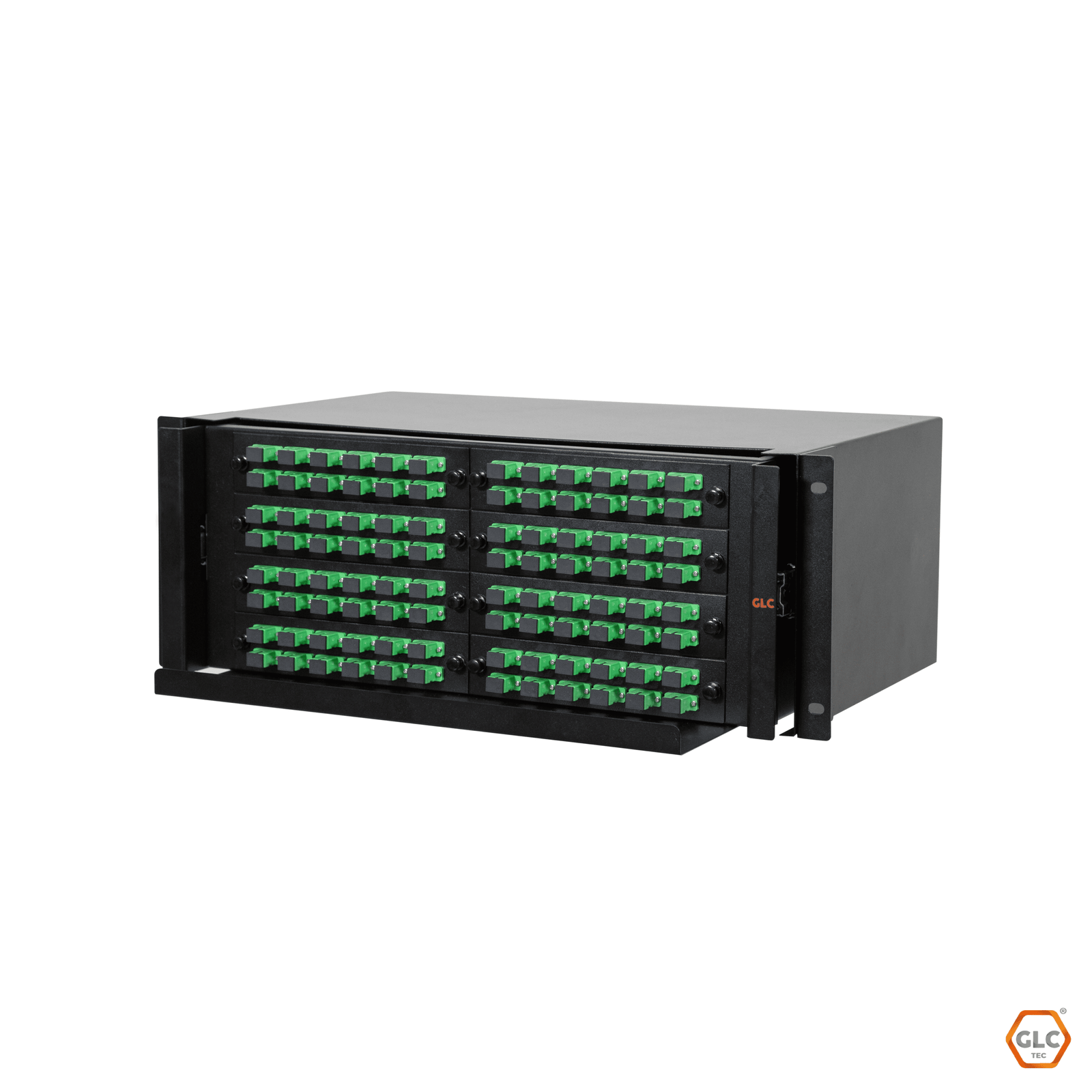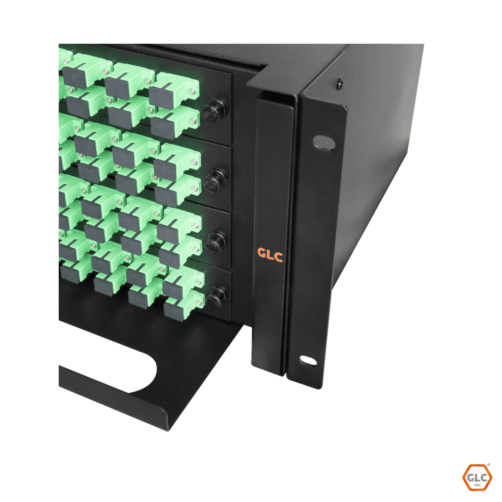 • Bandeja de fibra óptica GLC para montaje en rack de 2U y 19”.